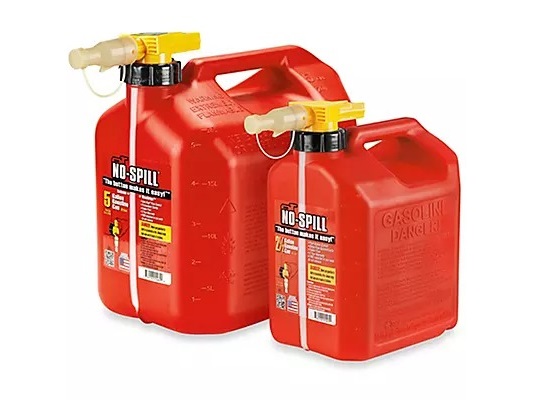 - Press the button to pour. Flow automatically stops when mower or generator tank is full.