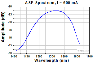 Typical ASE spectrum plot for the BOA1004PXS optical switch/shutter at 600 mA.