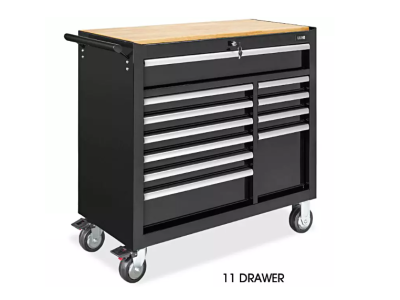 - 11 Drawer Tool Cabinet – (1) 37 x 16 x 4″, (5) 22 x 16 x 3″, (1) 22 x 16 x 6″, (3) 12 x 16 x 3″, (1) 12 x 16 x 12″.